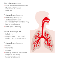 Die oberen Atemwege sind demnach die erste Barriere, um Fremdkörper, wie Schmutzpartikel, Bakterien und Viren, unschädlich zu machen.